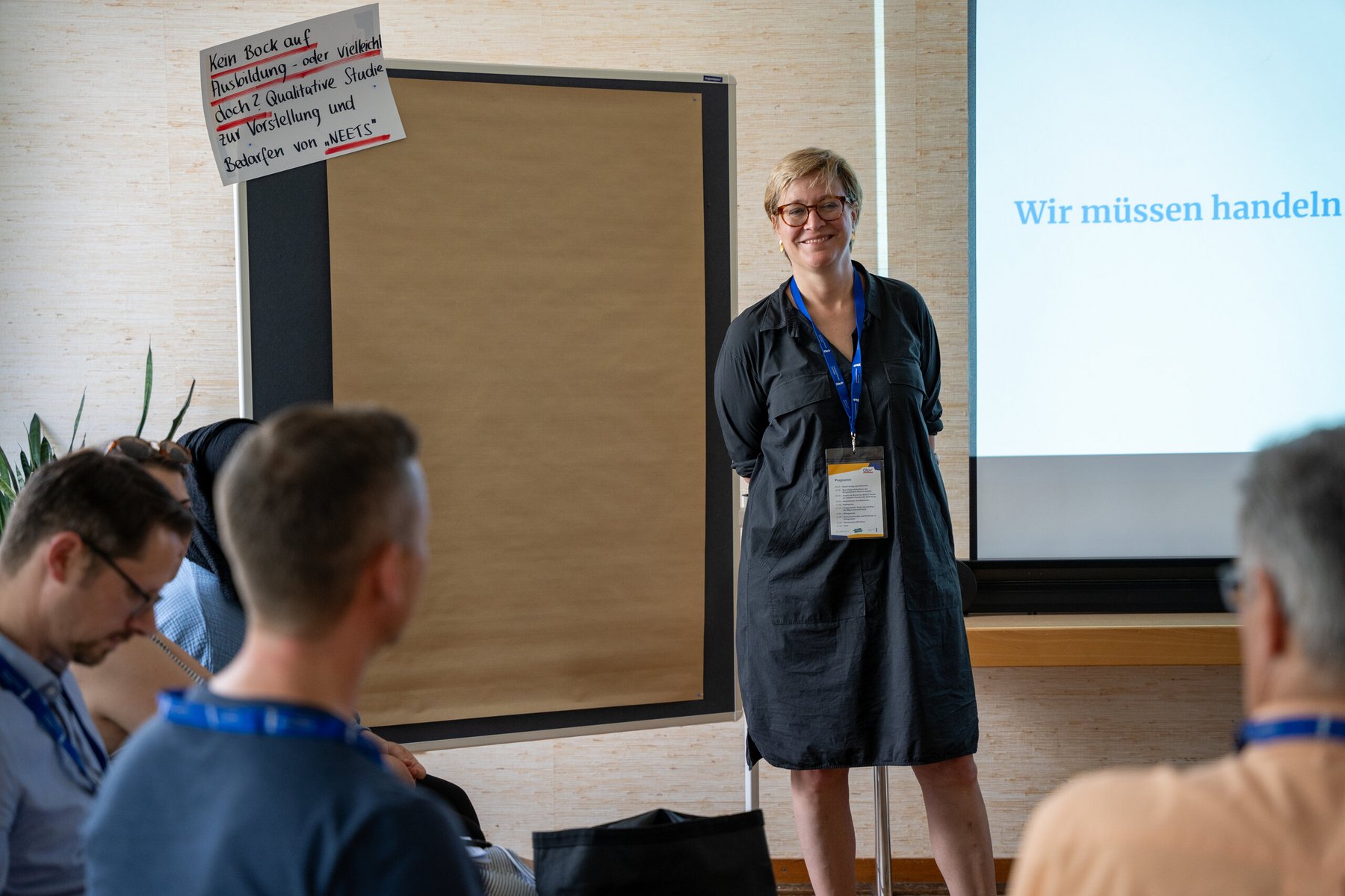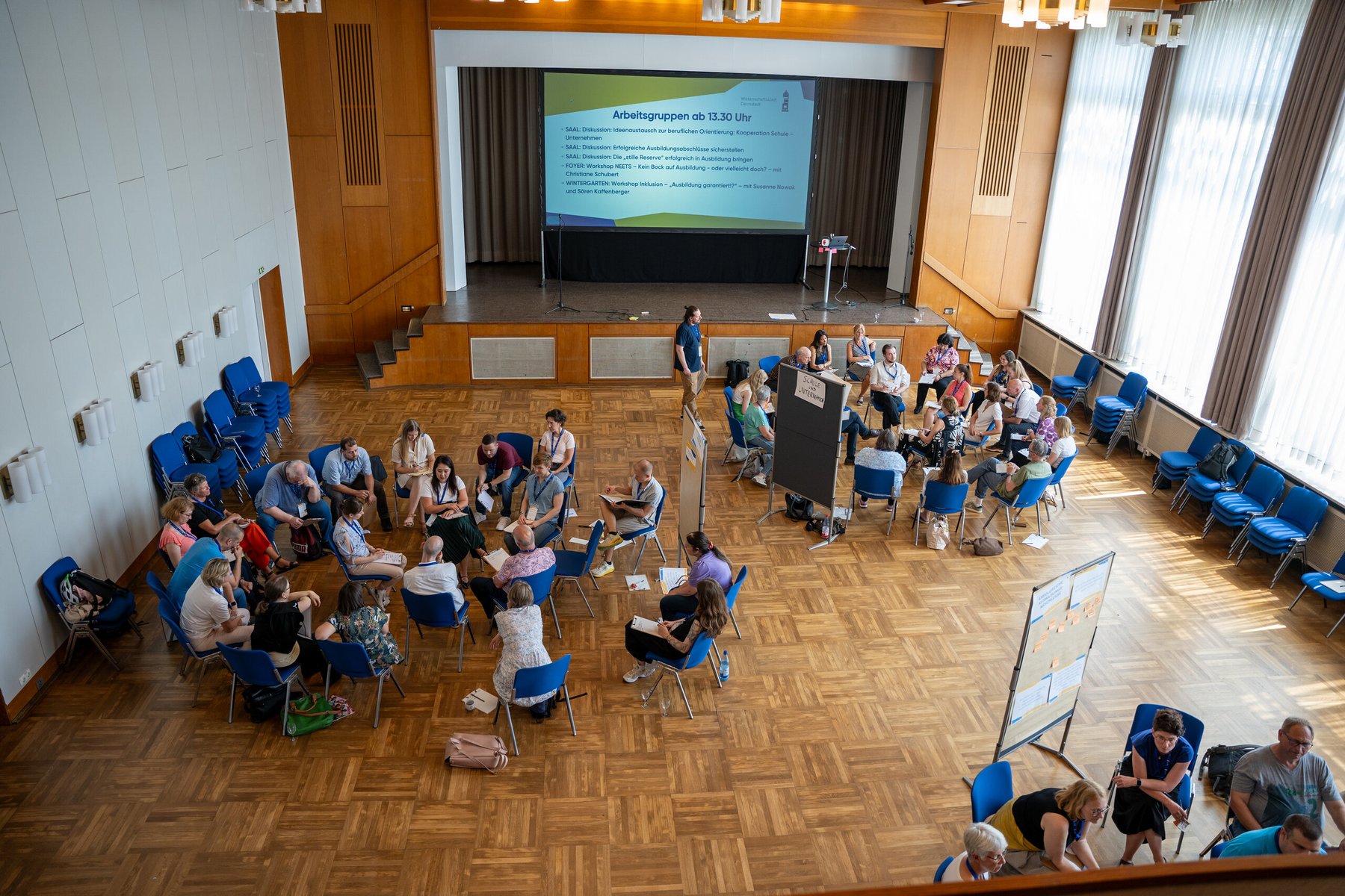 Am Nachmittag wurde in Fishbowl-Diskussionen weiter rege debattiert und die Sichtweisen anderer gehört. Zwei Workshops boten außerdem die Möglichkeit, sich mit der Zielgruppe der „NEETs“ sowie Ideen für eine gelungene Inklusion im Bereich von Ausbildung auszutauschen und zu vernetzen.