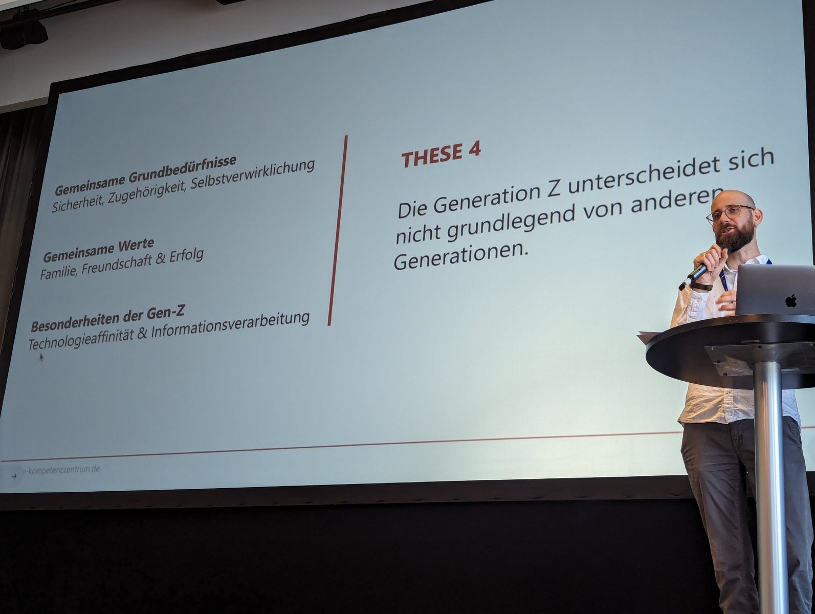 Nach einer Begrüßung durch Bürgermeisterin Barbara Akdeniz präsentierte Maximilian Auth vom RKW Kompetenzzentrum 5 Thesen zur aktuellen Situation der Ausbildung, die Anstoß für zahlreiche spannende Diskussionen im weiteren Verlauf lieferten: Tun die Schulen genug für die berufliche Orientierung? Muss die Zahl an Ausbildungsabbrüchen wirklich so hoch sein? Ist die „Generation Z“ so schlecht wie ihr Ruf? Und berücksichtigen Unternehmen überhaupt alle relevanten Zielgruppen auf der Suche nach zukünftigen Fachkräften?